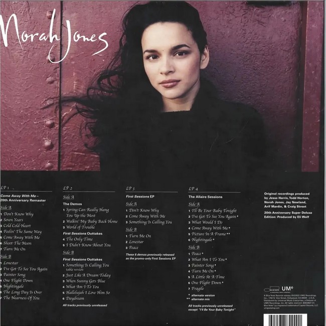 Фірмова вінілова платівка (VINYL)Come Away with Me is the debut studio album by American recording artist Norah Jones, released on February 26, 2002, by Blue Note Records. Recording sessions took place at Sorcerer Sound Studio in New York City and Allaire Studios in Shokan, New York.