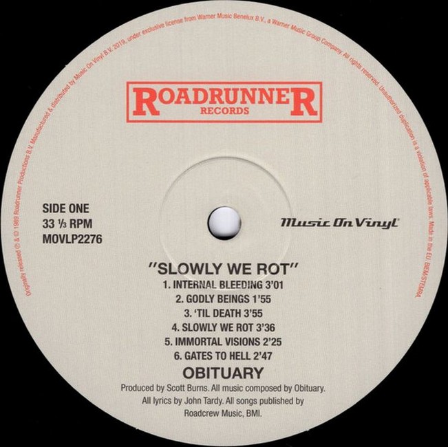 Фірмова вінілова платівка (VINYL)Slowly We Rot is the debut studio album by American death metal band Obituary, released on June 14, 1989. It is the only Obituary release to feature bassist Daniel Tucker. Lead guitarist Allen West would leave soon after but returned for the third album The End Complete (1992). It was re-released on January 27, 1997, by Roadrunner Records with remastered audio and liner notes. Despite being recorded in standard tuning and with Fender Stratocasters, it is considered to be one of the band's heavier efforts. The remainder of the band's output has been recorded in D tuning. A live version of the album, Slowly We Rot: Live & Rotting, was recorded in October 2020 and released in August 2022 by Relapse Records.