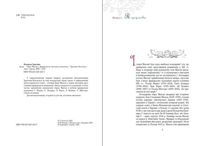 У запропонованому виданні вміщено дослідження мистецтвознавця Христини Пеленської на тему інтерпретації образу одного із найвидатніших діячів української історії – гетьмана Івана Мазепи у творах мистецтва представників французького романтизму. Книга складається із передмови, п’ятьох частин, присвячених відтворенню образу Мазепи в роботах французьких художників Т. Жеріко, Е. Делакруа, О. Верне, Л. Буланже, Т. Шассеріо, а також післямови.