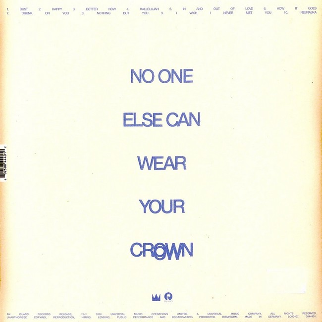 Фірмова вінілова платівка (VINYL)No One Else Can Wear Your Crown is the third studio album by London-based alt-pop duo Oh Wonder, released through Island Records on 7 February 2020. It was preceded by the release of the singles "Hallelujah", "Better Now", "I Wish I Never Met You" and "Happy". The duo embarked on a world tour in support of the album in March 2020. However, it was postponed due to the COVID-19 pandemic.