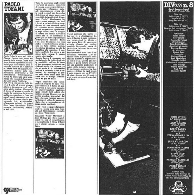 Фірмова вінілова платівка (VINYL)Paolo Tofani is guitar player and member of the Italian prog rock cult band Area (6) (1973 – 1979). Also member of Duo Darsan t/w Saveria Savidya Shukantala alias Shukantala Devi. Born January 19, 1944. Owner of the Krsna Vision label.