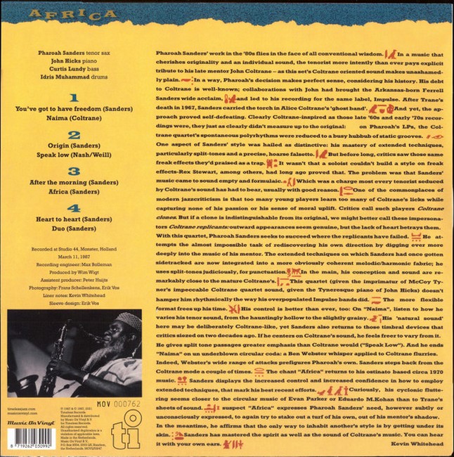 Фірмова вінілова платівка (VINYL)Africa is an album led by saxophonist Pharoah Sanders recorded in 1987 and released on the Dutch Timeless label.