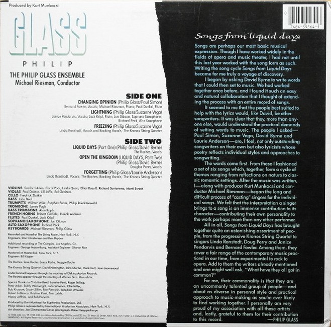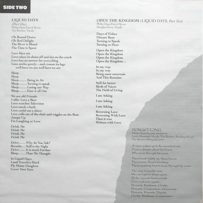 B1 | Liquid Days (Part I) Lyrics By – David Byrne Performer [The Roches] – Maggie Roche, Suzzy Roche, Terre Roche Vocals – The Roches | 4:46 | |