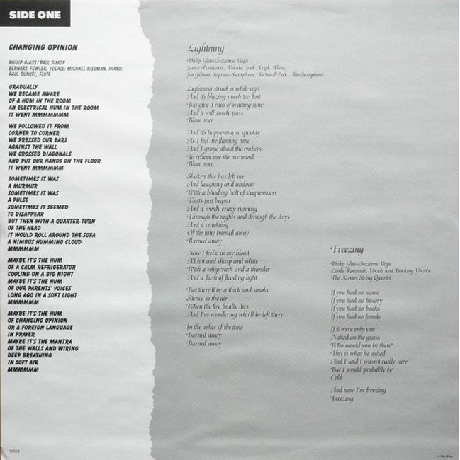 A3 | Freezing Lyrics By – Suzanne Vega Performer [The Kronos String Quartet] – David Harrington, Hank Dutt, Joan Jeanrenaud, John Sherba Strings – The Kronos String Quartet* Vocals, Backing Vocals – Linda Ronstadt | 3:16 | |