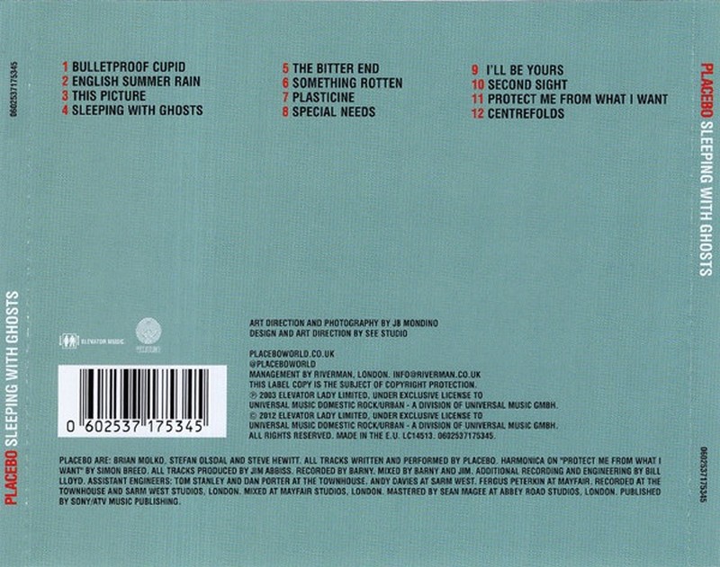 Фірмовий диск (CD)Sleeping with Ghosts is the fourth studio album by British alternative rock band Placebo. It was recorded from late 2002 to early 2003 and released on 1 April 2003 by record labels Virgin and Hut.