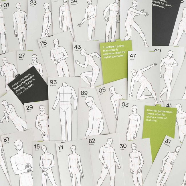 Poses for fashion illustration is a set of professional template cards tailor-made for developing fashion illustrations and sketches. It is packed with a wide range of occasions, dimensions, and body shapes - to provide all the practical poses you'll ever need in your career. For every fashion designer, Poses for fashion illustration is ready to turn your ideas into your greatest work.