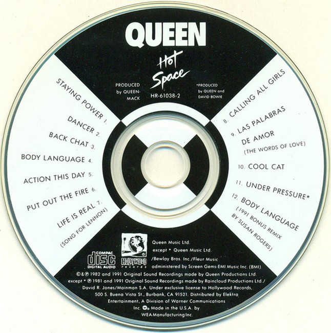 Фірмовий CD-дискHot Space is the tenth studio album by the British rock band Queen. It was released on 4 May 1982 by EMI Records in the UK and by Elektra Records in the US. Marking a notable shift in direction from their earlier work, they employed many elements of disco, funk, R&B, dance, pop and new wave music on the album. This made the album less popular with fans who preferred the traditional rock style they had come to associate with the band. Queen's decision to record a dance-oriented album germinated with the massive success of their 1980 hit "Another One Bites the Dust" in the US.