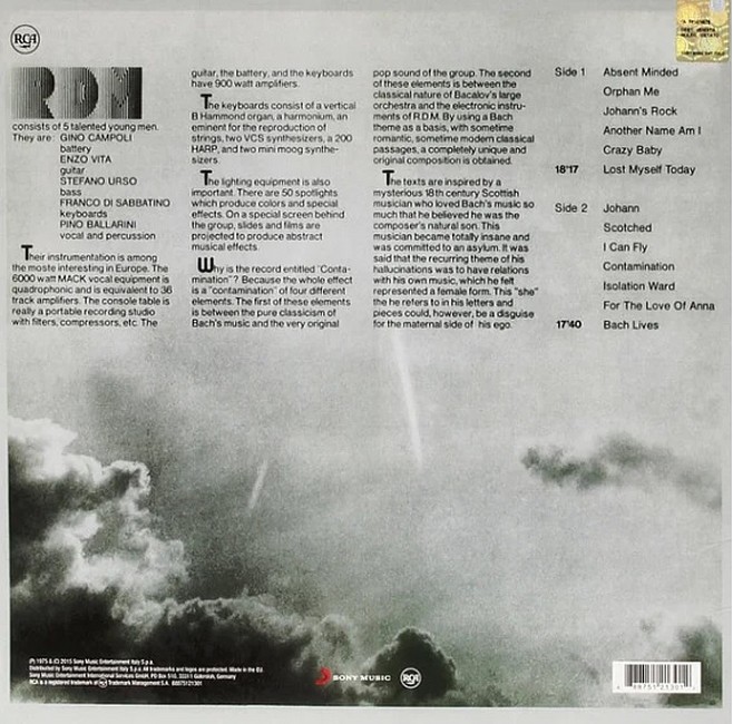 Фірмова вінілова платівка (VINYL)Il Rovescio della Medaglia, or RDM, were an Italian hard rock and symphonic rock band. They are most famous for their symphonic rock piece Contaminazione, released in 1973. It contained four pieces from Bach's Well-tempered Clavier seamlessly integrated with RDM's own music, which often was inspired by rock or hard rock. In 1974 the record was released in an English version, Contamination, with the group's name simplified to RDM, although still written in full on the back of the LP jacket.