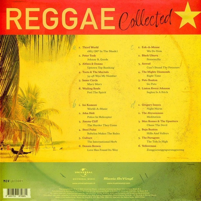Фірмова вінілова платівка (VINYL)Reggae is a music genre that originated in Jamaica in the late 1960s. The term also denotes the modern popular music of Jamaica and its diaspora. A 1968 single by Toots and the Maytals, "Do the Reggay", was the first popular song to use the word reggae, effectively naming the genre and introducing it to a global audience. Reggae is rooted out from traditional Jamaican Kumina, Pukkumina, Revival Zion, Nyabinghi, and burru drumming. Jamaican reggae music evolved out of the earlier genres mento, ska and rocksteady.