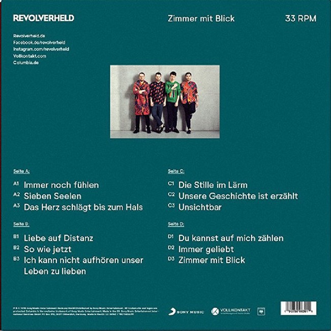 Фірмова вінілова платівка (VINYL)Zimmer mit Blick (English: Room with a View) is the fifth studio album by German band Revolverheld. Their first regular album in five years, it was released by Sony BMG on 13 April 2018 in German-speaking Europe.