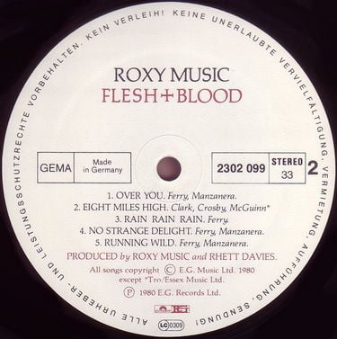 Flesh and Blood (stylised as Flesh + Blood) is the seventh studio album by English rock band Roxy Music, released on 23 May 1980 by E.G. Records. It was an immediate commercial success peaking at No. 1 in the UK for one week in June and then returned to the summit in August for another three weeks, in total spending 60 weeks on the albums chart in the United Kingdom. The album also peaked at No. 35 in the United States and No. 10 in Australia.