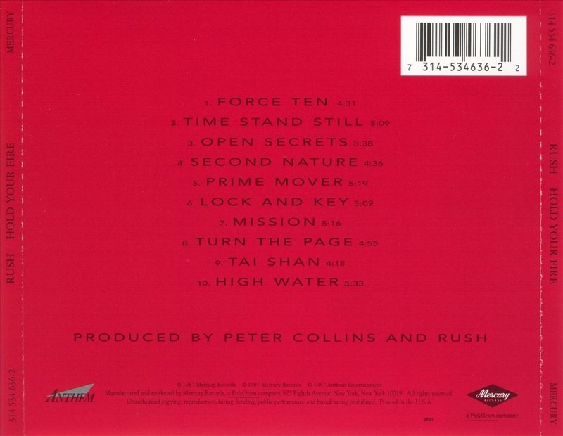 Фірмовий диск (CD)Hold Your Fire is the twelfth studio album by Canadian progressive rock band Rush, released on September 8, 1987. It was recorded at The Manor Studio in Oxfordshire, Ridge Farm Studio in Surrey, AIR Studios in Montserrat and McClear Place in Toronto.