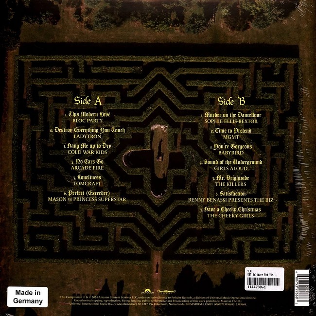 Фірмова вінілова платівка (VINYL)The soundtrack to the 2023 film Saltburn, directed by Emerald Fennell, consists of a score composed by Anthony Willis, as well as an number of pop songs. Willis had previously scored Fennell's Promising Young Woman (2020) and also M3GAN (2022). Saltburn (Original Motion Picture Score) features 18 cues from his score and was released by Milan Records on the same date as its international release, 17 November 2023. The soundtrack album, Saltburn (Music from the Motion Picture), was released on 28 June 2024.