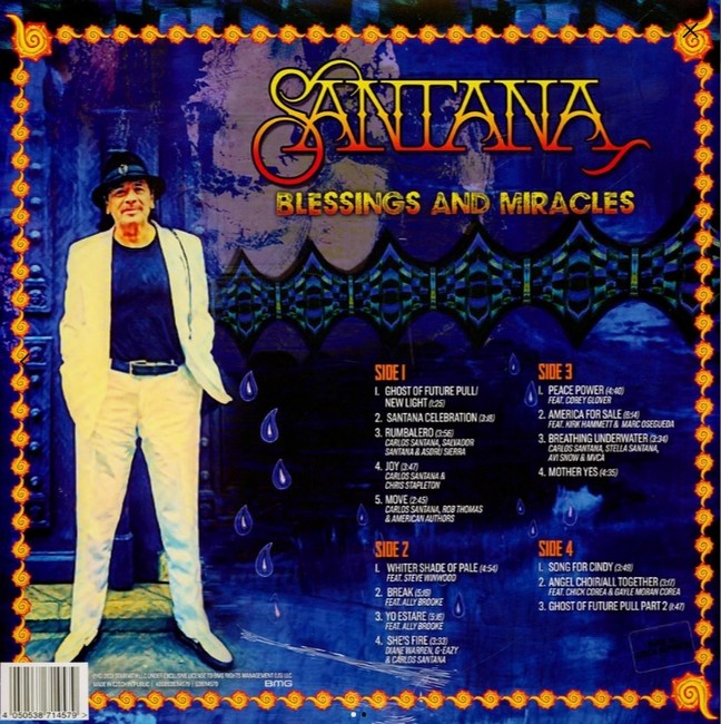 Фірмова вінілова платівка (VINYL)Blessings and Miracles is the twenty-sixth studio album by American rock band Santana. The album was released on October 15, 2021, by Starfaith LLC and BMG Rights Management and produced by Carlos Santana himself, who prepared it over the course of two years. The album features a number of guests, including Chris Stapleton, Ally Brooke, Corey Glover, Kirk Hammett, Chick Corea, Gayle Moran Corea, Steve Winwood and Rob Thomas, with whom Santana recorded again over 20 years after their hit "Smooth". Many of the collaborations were recorded remotely.