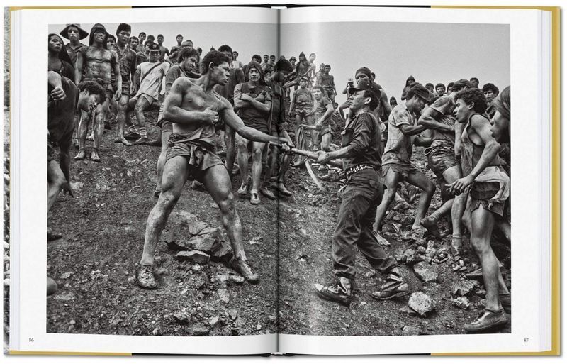 “What is it about a dull yellow metal that drives men to abandon their homes, sell their belongings and cross a continent in order to risk life, limbs and sanity for a dream?” – Sebastiao Salgado When Sebastiao Salgado was finally authorized to visit Serra Pelada in September 1986, having been blocked for six years by Brazil’s military authorities, he was ill-prepared to take in the extraordinary spectacle that awaited him on this remote hilltop on the edge of the Amazon rainforest. Before him opened a vast hole, some 200 meters wide and deep, teeming with tens of thousands of barely-clothed men. Half of them carried sacks weighing up to 40 kilograms up wooden ladders, the others leaping down muddy slopes back into the cavernous maw. Their bodies and faces were the color of ochre, stained by the iron ore in the earth they had excavated.