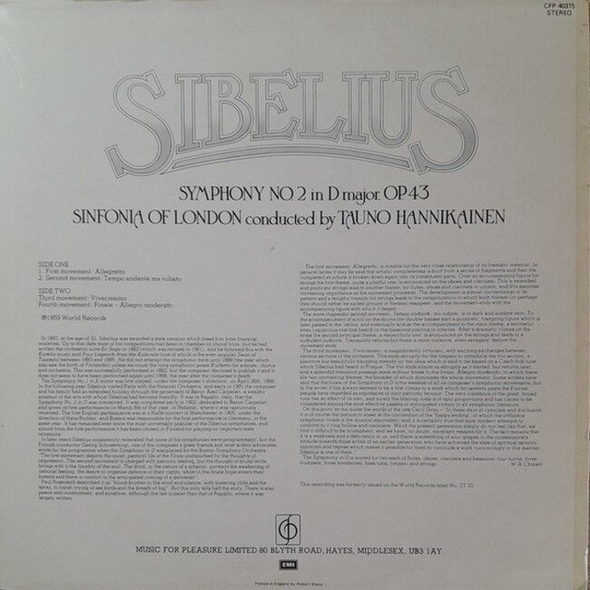 Sibelius - Sinfonia Of London - Tauno Hannikainen – Symphony No.2 In D Major, Op. 43