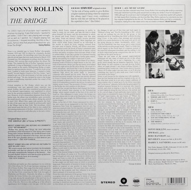 Фірмова вінілова платівка (VINYL)The Bridge is a studio album by jazz saxophonist Sonny Rollins, recorded in 1962. It was Rollins' first release following a three-year sabbatical and was his first album for RCA Victor. The saxophonist was joined by the musicians with whom he recorded for the next segment of his career: Jim Hall on guitar, Bob Cranshaw on double bass and Ben Riley on drums.