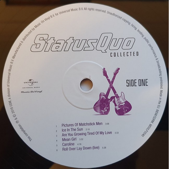 Фірмова вінілова платівка (VINYL)Status Quo are a British rock band. The group originated in London and was founded in 1962 by Francis Rossi and Alan Lancaster while they were still schoolboys. After a number of name and lineup changes, which included the introduction of John Coghlan in 1963 and Rick Parfitt in 1967, the band became The Status Quo in 1967 and Status Quo in 1969. As of 2022, the group have been active for 60 consecutive years (despite announcing a breakup in 1984, they played Live Aid the following year and resumed normal activities in 1986).