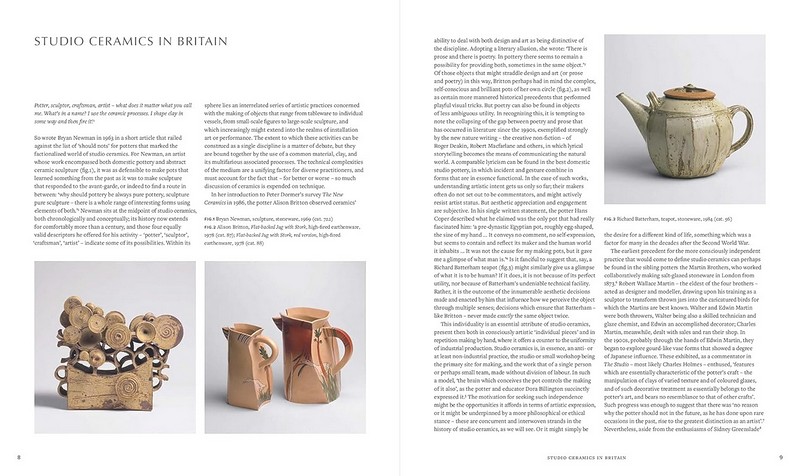 An extensive visual catalog and the primary reference for twentieth-century and contemporary British studio ceramics, and a record of the national collection of British ceramics held at the V&A.Contemporary ceramicists working in Britain, including Rachel Kneebone, Grayson Perry, and Edmund de Waal, are part of a broader international group of artists experimenting with clay, considering how it intersects and works in dialogue with other art forms and culture at large. Recent experimentation with the medium owes much to the rapid evolutionof ceramics into an expanded field, and to the work of mid- to late 20th-century potters and their reinvention of ceramics as a radical and contemporary art practice. The pioneering methods and rethinking of form in the work of exponents such as Bernard Leach, Michael Cardew, Lucie Rie, Hans Coper, and Alan Caiger-Smith whose reference points were drawn from East Asia, Africa, the ancient Mediterranean, and the Middle East as much as from their own heritage?continue to influence and inspire contemporary makers.