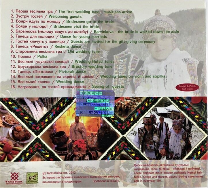 Диск включає автентичні гуцульські награвання, пісні та танці - обрядові та побутові / These compact disc include authentic Hutsul folk tunes, songs and dance played during ceremonies and in everyday life