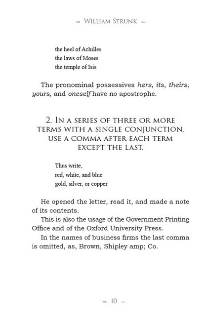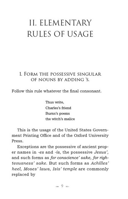 The Elements of Style is a study guide for the development of writing style by William Strunk Jr., a professor of English at Cornell University. It was later finished by his student, Elwyn Brooks White. Now it is commonly known as “the study guide by Strunk and White”. In short, this book is for someone who wants to become a writer.The Elements of Style is some kind of examples’ collection of all kinds of styles of writing very different works. It comprises eight "elementary rules of usage", ten "elementary principles of composition", "a few matters of form", a list of 49 "words and expressions commonly misused", and a list of 57 "words often misspelled".