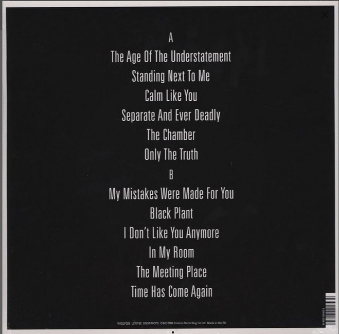 Фірмова вінілова платівка (VINYL)The Age of the Understatement is the debut studio album by English supergroup the Last Shadow Puppets, released on 15 April 2008 by Domino Recording Company. It was written between band co-frontmen Alex Turner and Miles Kane in 2006. It was produced in Paris and London by fellow member James Ford, featuring orchestral arrangements composed by Owen Pallett, and performed by the London Metropolitan Orchestra. The album artwork features a 1962 black and white picture, by photographer Sam Haskins, depicting a young woman, named Gill, sitting on the floor.