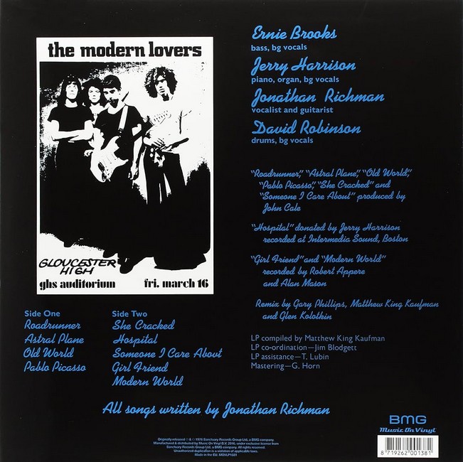 Фірмова вінілова платівка (VINYL)The Modern Lovers is the debut studio album by American rock band the Modern Lovers. It was released on Beserkley Records in 1976, though the original tracks had been recorded in 1971 and 1972. Six of the original tracks were produced by John Cale. The album pointed towards alternative music genres such as punk rock, new wave and indie rock.