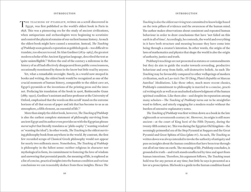The Teaching of Ptahhatp ought to begin the list of the world’s classics of philosophy, yet it has been largely forgotten since its rediscovery in the nineteenth century. Manley’s new translation corrects this oversight, making accessible for the first time the Old Kingdom vizier Ptahhatp’s concise, helpful insights into the human condition.