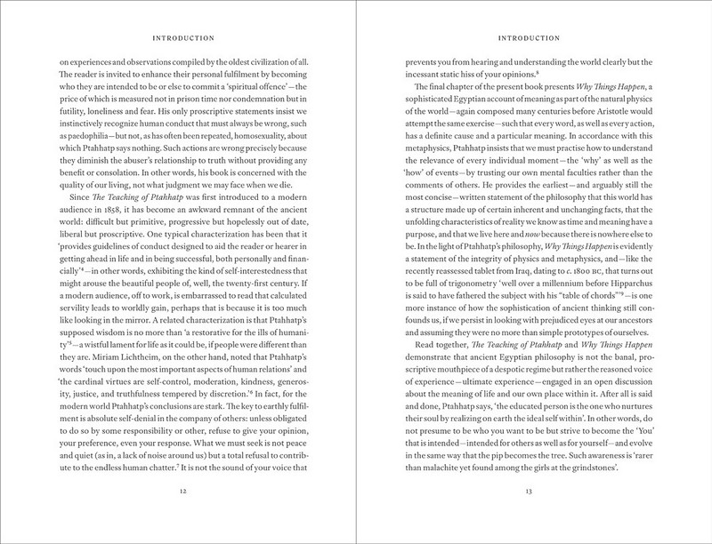 New translations of two further texts?The Dialogue Between a Man and His Soul, in which a man asks himself, “What is the point of living?,” and Why Things Happen, the oldest surviving account of creation from anywhere in the world?demonstrate how Ptahhatp’s philosophy was founded in ancient Egyptian beliefs about truth and reality. Manley introduces the vizier and the world within which he operated, as well as the significance of the “oldest book of the world,” preserved in a scroll now known as the Papyrus Prisse in the Bibliotheque Nationale de France. Together these works by Ptahhatp provide a new perspective on the Pyramid Age and overturn traditional stereotypes about the origins of Western philosophy.