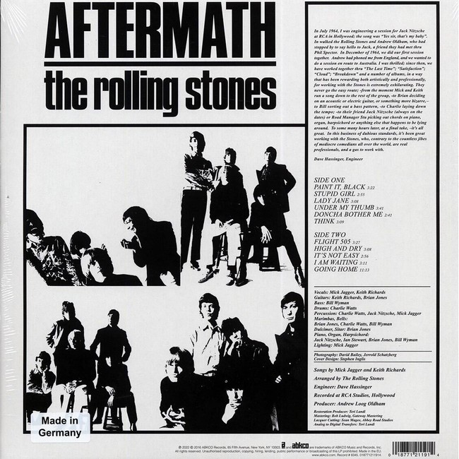 Фірмова вінілова платівка (VINYL)Aftermath is the fourth studio album by the English rock band the Rolling Stones. The group recorded the album at RCA Studios in California in December 1965 and March 1966, during breaks between their international tours.