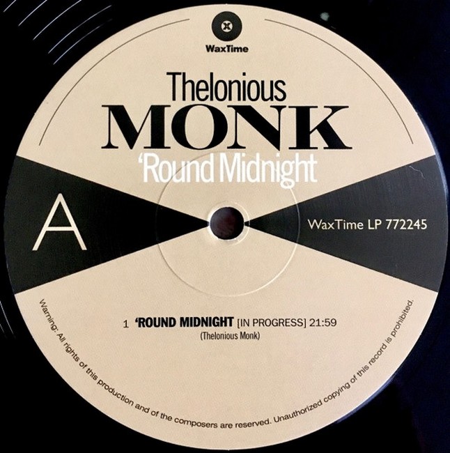 Фірмова вінілова платівка (VINYL)"'Round Midnight" (sometimes titled "'Round About Midnight") is a 1943 composition by American jazz pianist Thelonious Monk that quickly became a jazz standard and has been recorded by a wide variety of artists. A version recorded by Monk's quintet was added to the Grammy Hall of Fame in 1993. It is one of the most recorded jazz standards composed by a jazz musician.