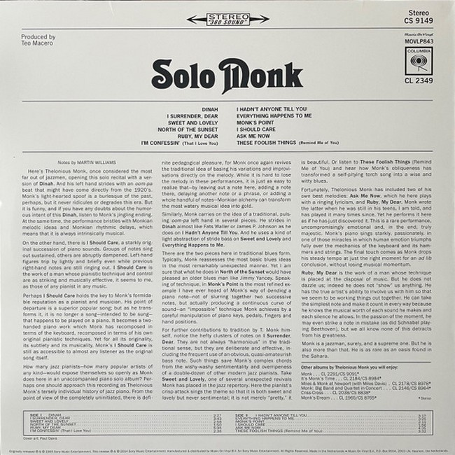 Thelonious Sphere Monk (October 10, 1917 – February 17, 1982) was an American jazz pianist and composer. He had a unique improvisational style and made numerous contributions to the standard jazz repertoire, including "'Round Midnight", "Blue Monk", "Straight, No Chaser", "Ruby, My Dear", "In Walked Bud", and "Well, You Needn't". Monk is the second-most-recorded jazz composer after Duke Ellington.