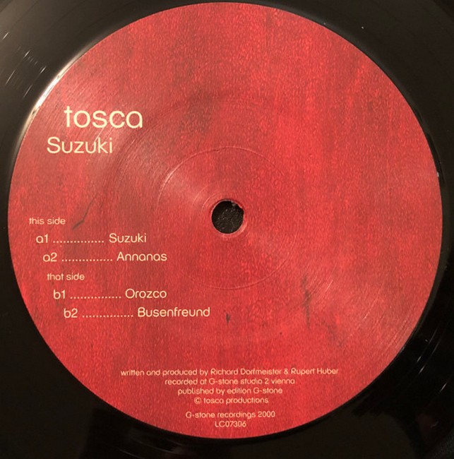 Фірмова вінілова платівка (VINYL)Suzuki is the second studio album by Austrian duo Tosca, released by Studio !K7 and G-Stone Recordings in 2000. Unlike many of Tosca's subsequent releases, Suzuki is essentially an instrumental album, with vocal samples integrated throughout, but in such a way that they "become a part of the instrumentation." The album is dedicated to the Zen master Shunryu Suzuki. The dedication can be found on the inside of the front cover.