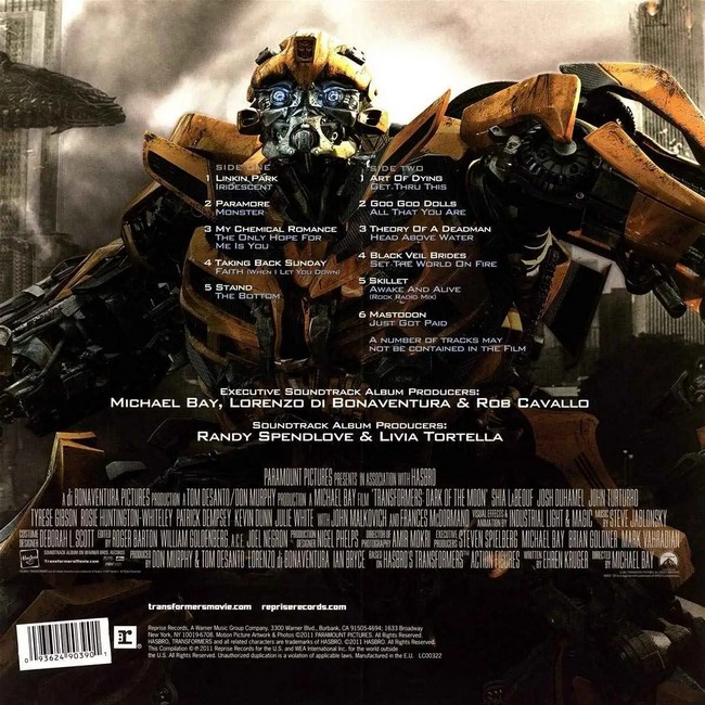 Фірмова вінілова платівка (VINYL)Transformers: Dark of the Moon – The Album is a compilation album of various artists music from the 2011 film Transformers: Dark of the Moon. The first official single from the album is the radio edit version of "Iridescent" by Linkin Park. The second single released for the film is "Monster" by Paramore. The third single released is "All That You Are" by Goo Goo Dolls. The score was released digitally 10 days after the album. U2 song "North Star" was used in the movie.