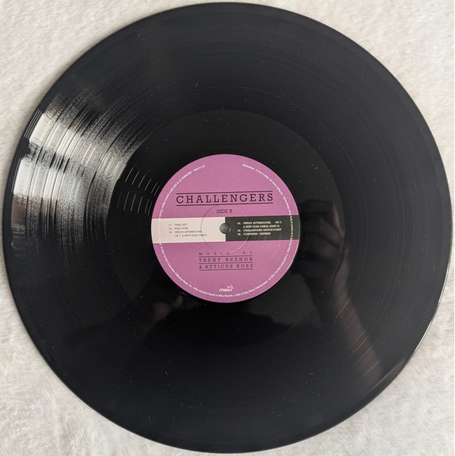 Альбом Challengers (Original Score) композиторів Трента Резнора та Аттікуса Росса, випущений 1 листопада 2024 року лейблом Milan Records, є офіційним саундтреком до фільму Лука Гуаданьїно з Зендеєю в головній ролі. Альбом поєднує техно, електроніку та індустріальні елементи, створюючи напружену атмосферу, що відображає напругу та емоційну глибину фільму. Особливістю релізу є трек "Compress / Repress", спільно написаний з Гуаданьїно та виконаний Трентом Резнором і Марікін Маандіг Резнор, який завершує альбом. Випуск здійснений у форматі 180-грамового чорного вінілу в гейтфолдовому конверті, що містить ексклюзивні матеріали, такі як колаж з фотографій зі зйомок, набір з трьох колекційних карток зображеннями акторів та наклейку "Phil’s Tire Town".?A1 Trent Reznor & Atticus Ross – Challengers