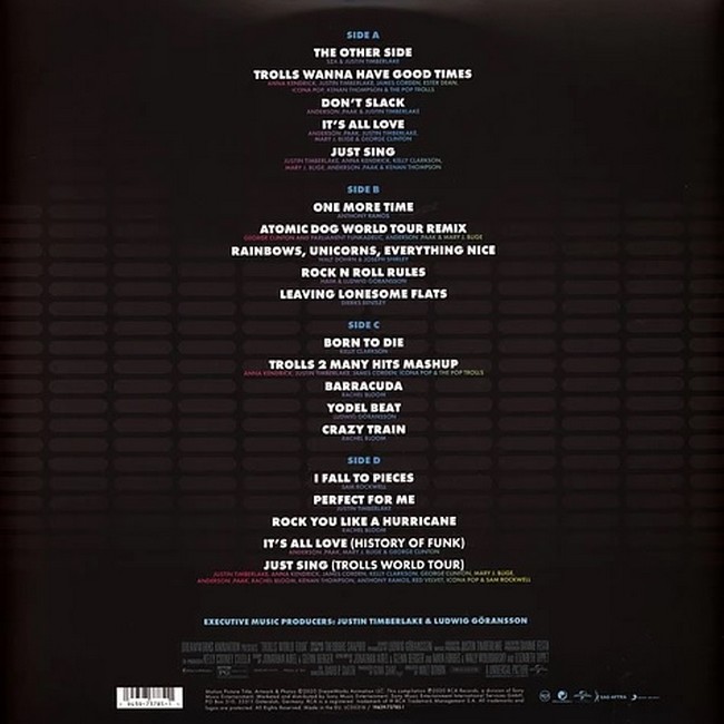 Фірмова вінілова платівка (VINYL)Trolls World Tour: Original Motion Picture Soundtrack is the soundtrack album to the 2020 DreamWorks Animation film Trolls World Tour, released by RCA Records on March 13, 2020. The soundtrack is produced primarily by singer-songwriter Justin Timberlake. The singles "The Other Side" by SZA and Timberlake and "Don't Slack" by Anderson .Paak and Timberlake were released prior to the album.