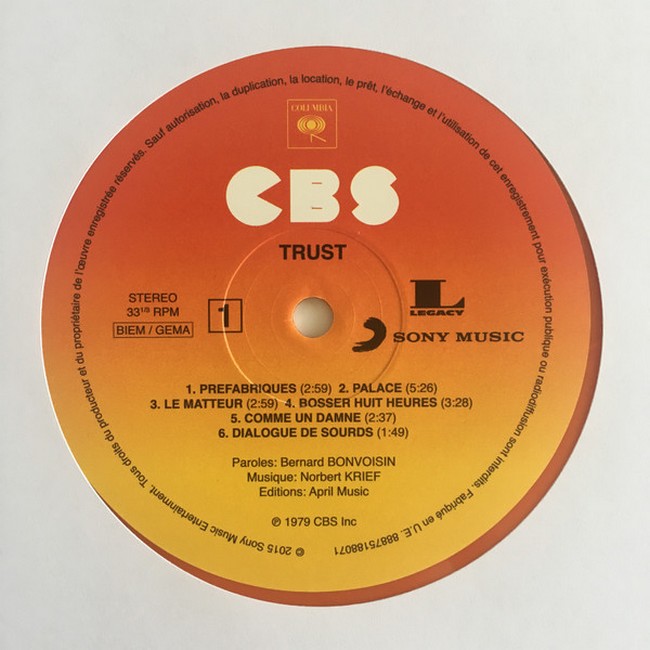 Фірмова вінілова платівка (VINYL)Trust is a French hard rock band founded in 1977 and popular in Europe in the first half of the 1980s. The band is best known for guitarist Norbert "Nono" Krief's prowess, for Bernard "Bernie" Bonvoisin's voice reminiscent of AC/DC's Bon Scott and for his lyrics about social and political themes. Iron Maiden's drummers Nicko McBrain and Clive Burr were part of Trust line-up in the 1980s. The band disbanded in 1985 and reformed in the 2000s for live shows and new recordings.