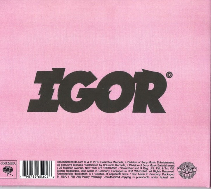 Фірмовий диск (CD)Igor is the sixth studio album by the American rapper Tyler, the Creator. It was released on May 17, 2019, through Columbia Records. Produced solely by Tyler himself, the album features guest appearances from Playboi Carti, Lil Uzi Vert, Solange, Kanye West, and Jerrod Carmichael. Following the release of Tyler's previous album Flower Boy (2017), the album was primarily recorded in California, with recording sessions also being held in Lake Como, Italy, and Atlanta between 2017 and 2019.
