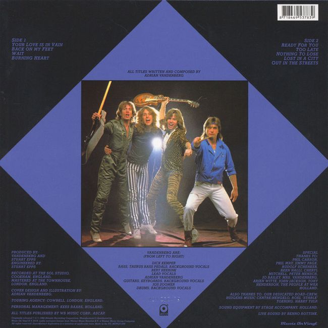 Группа Vandenberg, возглавляемая виртуозом гитары Адрианом Ванденбергом, дебютировала на сцене в начале 80-х и быстро завоевала сердца любителей рока. Их одноименный альбом, который теперь можно вновь пережить на виниле, содержит треки, ставшие настоящими хитами и классикой жанра, включая знаменитую балладу "Burning Heart".