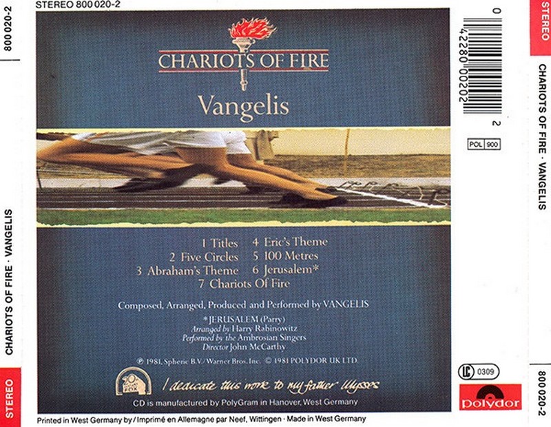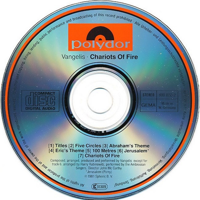Фірмовий диск (CD)Chariots of Fire is a 1981 musical score by Greek electronic composer Vangelis (credited as Vangelis Papathanassiou) for the British film Chariots of Fire, which won four Academy Awards including Best Picture and Original Music Score.