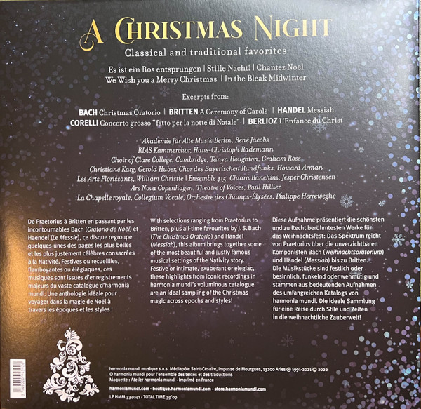 Винил "Various – A Christmas Night" идеален для тех, кто ищет не только превосходные акустические качества, но и атмосферу праздника в каждой ноте. Он станет прекрасным дополнением к праздничному вечеру, украсит любую коллекцию и будет замечательным подарком для любителей классической музыки. Этот альбом создан, чтобы мгновения превращались в воспоминания, наполненные теплом и радостью.