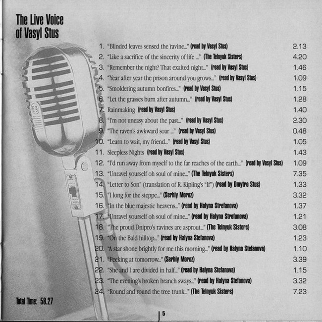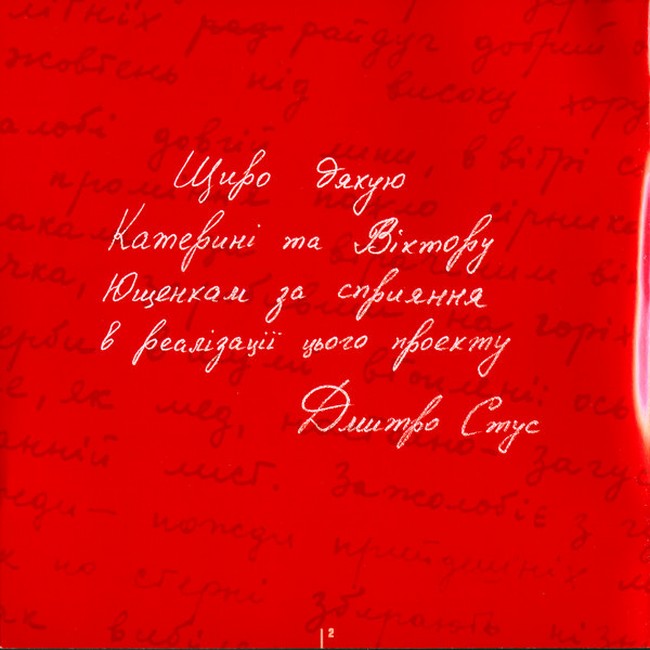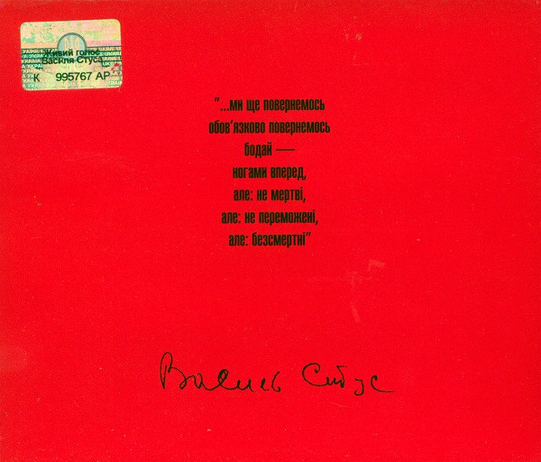 Фірмовий CD-дискВаси?ль Семе?нович Стус, псевдо Василь Петрик (6 січня 1938, село Рахнівка, Гайсинський район, Вінницька область Українська РСР, СРСР — 4 вересня 1985, табір ВС-389/36-1 (Перм-36), біля села Кучино, Пермський край, РРФСР, СРСР) — український поет-шістдесятник, перекладач, публіцист, прозаїк, мислитель, літературознавець, літературний критик, правозахисник, політв'язень СРСР, дисидент, член Української Гельсінської групи, борець за незалежність України у XX столітті. Один із найактивніших представників українського дисидентського руху. Учасник акції протесту в київському кінотеатрі «Україна» в 1965 році. Лауреат Державної премії ім. Т. Шевченка (1991, посмертно), Герой України (2005, посмертно). Батько Дмитра Стуса.