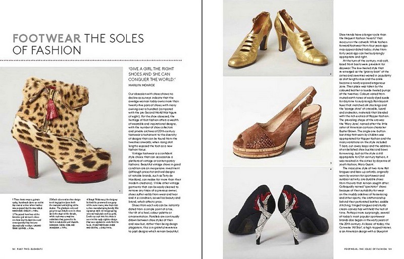 Vintage Fashion is organized into three main sections. “Decades” traces the shapes and fabrics that define the look of each period. “Elements” explores the individual components of a vintage look, everything from hat to shoes. “Hallmarks” outlines fashion’s perennial themes, from florals to the ever-popular little black dress. Finally, a reference section includes invaluable practical advice for fans and collectors of vintage.