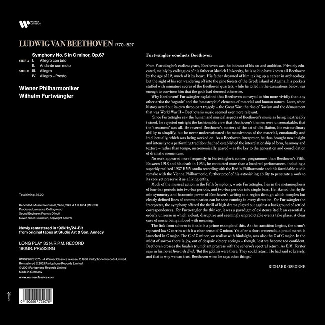 Фірмова вінілова платівка (VINYL)Gustav Heinrich Ernst Martin Wilhelm Furtwangler (25 January 1886 – 30 November 1954) was a German conductor and composer.