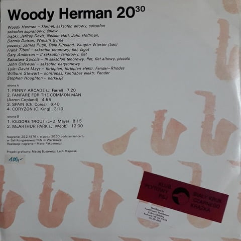 20:30 by Woody Herman, released in 1975, is a jazz album celebrating Herman's 40-year career as a big band leader and musician. The title reflects this milestone, with "20" signifying his 20th album for the Fantasy label and "30" nodding to his 30-piece ensemble at that time. Known for blending swing, bebop, and jazz fusion, Herman's 20:30 features inventive arrangements and spirited performances that exemplify his ability to adapt to changing jazz landscapes. Tracks like "La Fiesta" and "Goodbye Pork Pie Hat" showcase both his dynamic clarinet work and his band's versatility. This album underscores Herman's role in keeping big band jazz vibrant and relevant well into the modern jazz era.