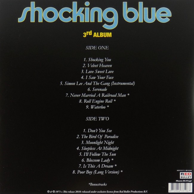 Фірмова вінілова платівка (VINYL)Shocking Blue was a Dutch rock band formed in The Hague in 1967. They were part of the Nederbeat movement in the Netherlands. The band had a string of hit songs during the counterculture movement of the 1960s and early 1970s, including "Send Me a Postcard" and "Venus", which became their biggest hit and reached number one on the U.S. Billboard Hot 100 and many other countries during 1969 and 1970. The band sold 13 million records by 1973 but disbanded in 1974. Together with Golden Earring, they are considered the most successful Nederbeat band, because they had their best hits charted abroad and especially in the United States.