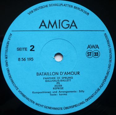 Bataillon d'Amour by the German band Silly was released in 1986 and is one of their most acclaimed albums. The title track, "Bataillon d'Amour," became one of the band's biggest hits, featuring poignant lyrics about love and longing. This album showcases Silly's unique blend of rock, art-pop, and politically infused songwriting, with lyrics again penned by Werner Karma. Tamara Danz's powerful and emotive vocals stand out throughout the album, adding depth to its reflective and socially conscious themes. Bataillon d'Amour solidified Silly’s legacy as one of East Germany’s most influential rock bands, continuing their tradition of addressing both personal and societal issues through their music.