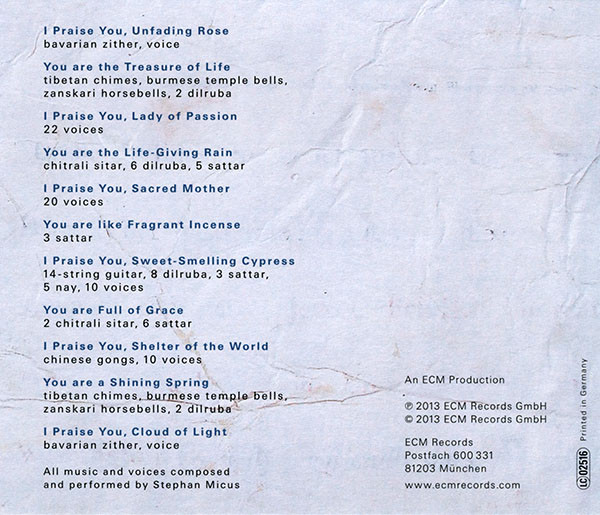 CD-1 | I Praise You, Unfading Rose | 6:41 | |
