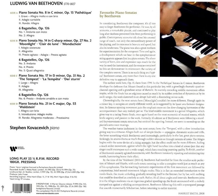 Фірмова вінілова платівка (VINYL)Stephen Kovacevich (born October 17, 1940) is an American classical pianist and conductor. He is particularly celebrated for his recordings of works by Beethoven, Bartok, and Schubert, and is known for technical skill, clarity of playing, and an intelligent approach to interpretation.