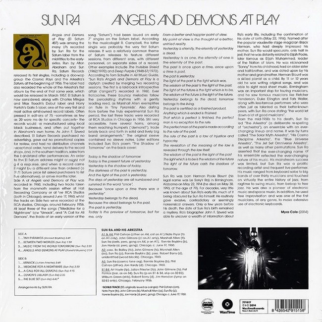 Фірмова вінілова платівка (VINYL)Angels and Demons at Play is a jazz album by Sun Ra and his Myth Science Arkestra. Side one was recorded in 1960, including two tracks taken from the mammoth session either at Hall Recording Company or at the RCA Studios (both in Chicago), around 17 June 1960, whilst the tracks on side two were recorded at the RCA studios, Chicago, around February 1956. Saturn Records had issued at least three of the songs ("Medicine for a Nightmare" b/w "Urnack", and "A Call For All Demons", the B-side of an early version of the song "Saturn") as 7-inch singles.